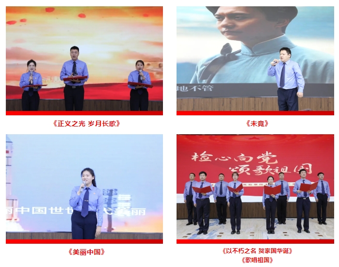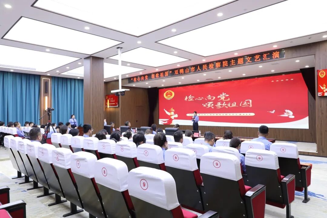 为纪念中国人民抗日战争暨世界反法西斯战争胜利80周年、庆祝中华人民共和国成立76周年,进一步教育引导全市检察干警从抗战精神中汲取力量,在新时代检察实践中践行爱国情怀,双鸭山市人民检察院举办“检心向党 颂歌祖国”主题文艺汇演活动。全体干警齐聚一堂,以歌传情、以声抒志,在艺术的旋律中回望初心,在激昂的氛围中凝聚力量。